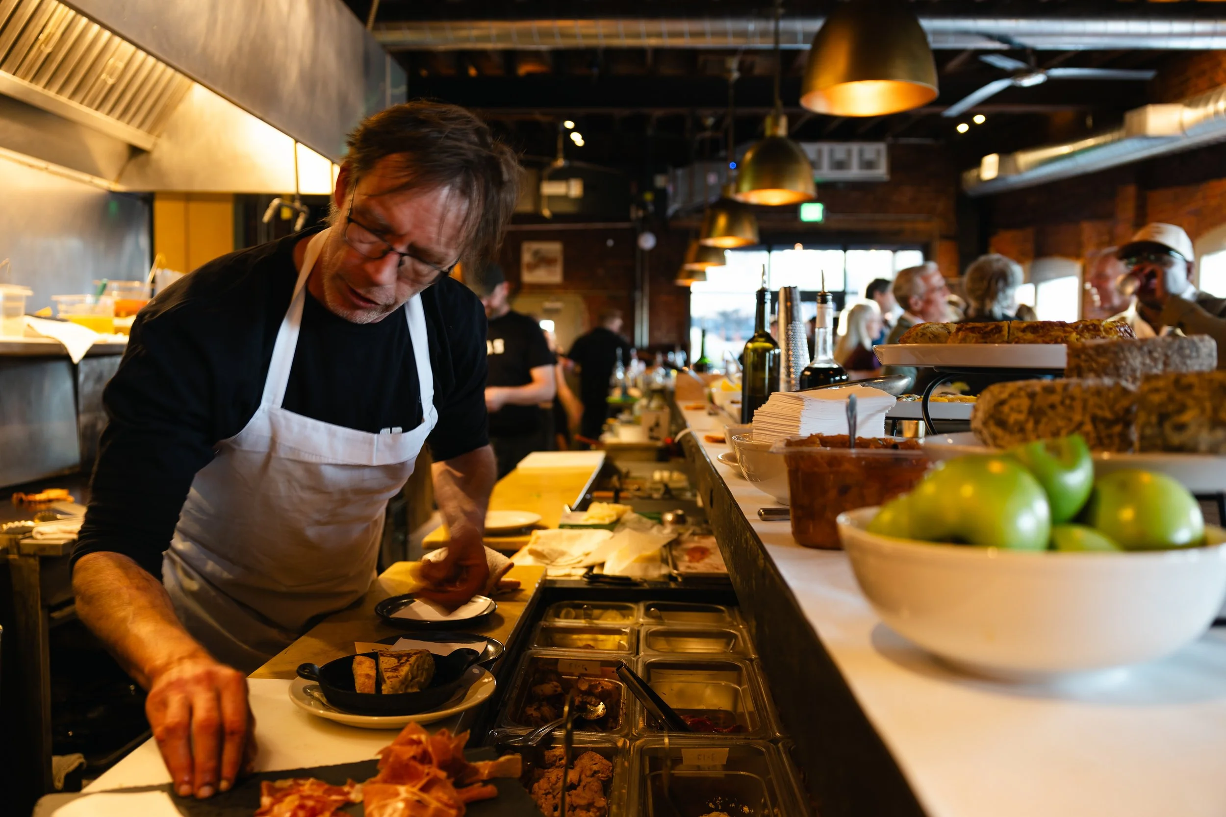 He honed his skills in a wide range of Charlottesville restaurants — from neighborhood bagel shops and barbecue kitchens to fine dining establishments, before joining Mas in 2004 as line cook. Showing up early with sharp knives and an open mind ready to learn, each experience helped shape the thoughtful, ingredient-driven approach that defines his cooking today.